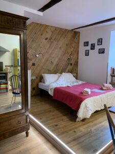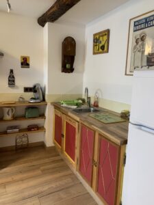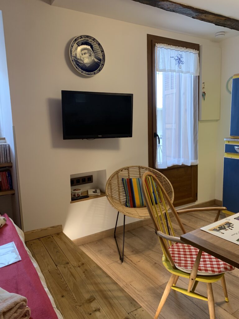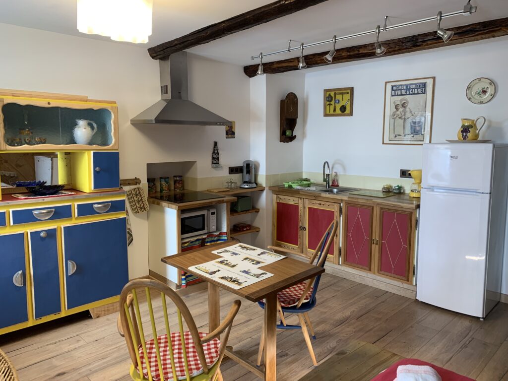 Description : grand studio entièrement rénové dans le centre ancien de Saint-Martin Vésubie, situé au premier étage d’une maison en bas du village, dans une rue calme. Pour votre séjour vous pourrez profiter d’une cuisine aménagée, d’un balcon agréable, d’une salle de bain colorée et de tout le confort dont vous avez besoin. Nous l’avons rénové avec soin et avons choisi de garder les meubles existants en les mettant au goût du jour. Parking à proximité.